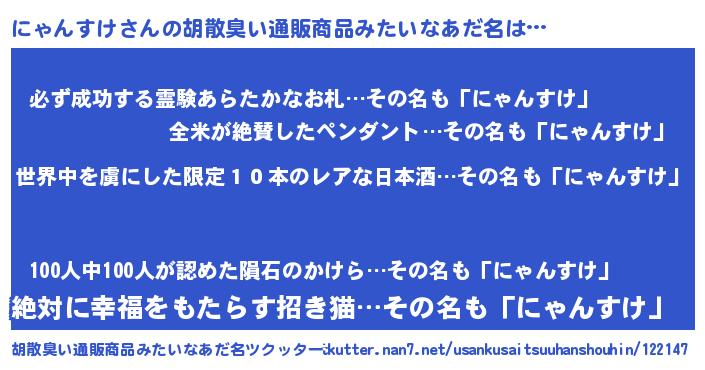 | ヘコむあだ名 | 『にゃにゅー』『にゃんすけ(遠い目)』 |