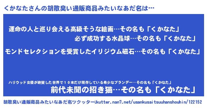 | ヒーロー風カッコイイあだ名 | 『慈愛の使者くかなた』『ネオクカナタ』 |