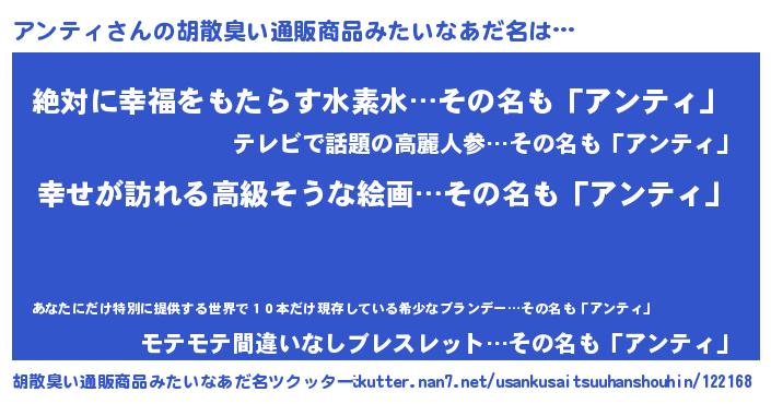 | 男性向けラノベタイトル風あだ名 | 『やはりアンティの青春ラブコメはまちがっている 』 |