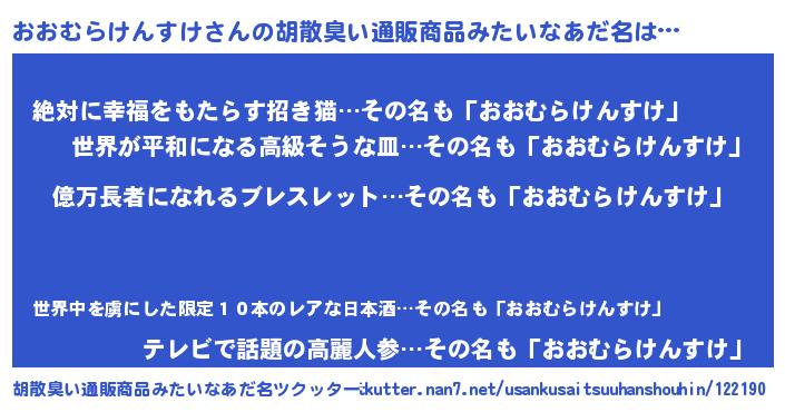 | ヘコむあだ名 | 『おおふぇ~』『おおむらけんすけ(遠い目)』 |