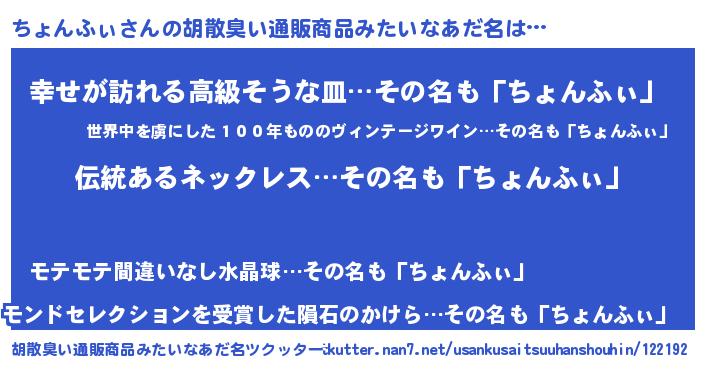 | 意味不明あだ名 | 『とにかく怪しいちょんふぃ』 |