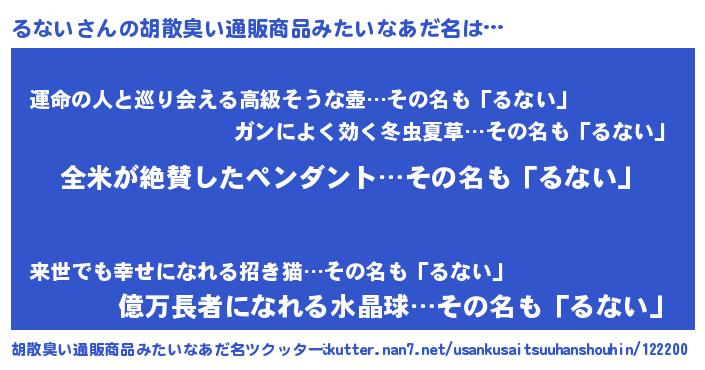 | 意味不明あだ名 | 『とにかく怪しいるない』『自称るない』 |