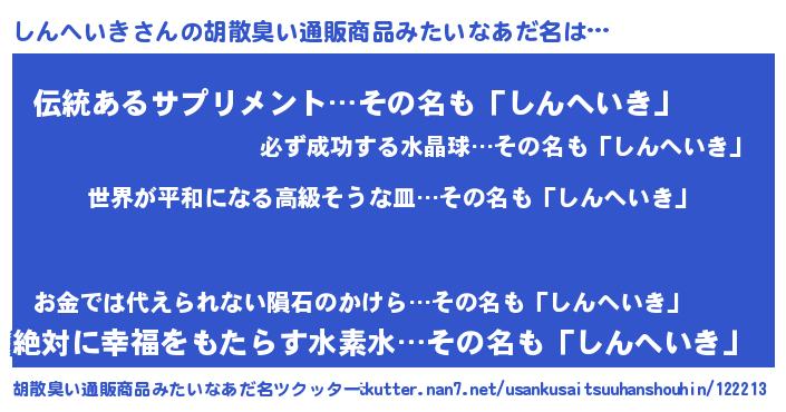 | ヘコむあだ名 | 『なまこ酢』『しんを』『しんにゅー』 |