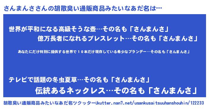 | ヘコむあだ名 | 『酢こんぶ』『さんお』『さんもー』 |