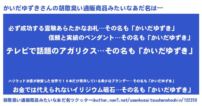| 意味不明あだ名 | 『自称かいだゆずき』 |