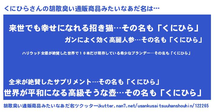 | 意味不明あだ名 | 『めかぶ科くにひら属』『自称くにひら』 |