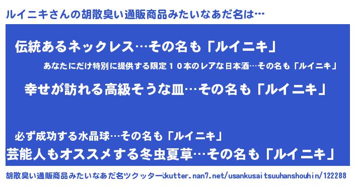 | 意味不明あだ名 | 『ルイニキフォーエバー』『自称ルイニキ』 |