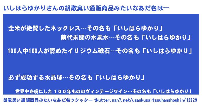 | ヘコむあだ名 | 『いしっ子』『いしはらゆかり(苦笑)』 |