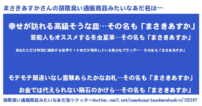 | 意味不明あだ名 | 『住所不定無職まさきあすか(91歳)』 |