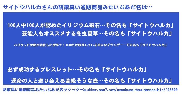 | 意味不明あだ名 | 『住所不定無職サイトウハルカ(86歳)』 |