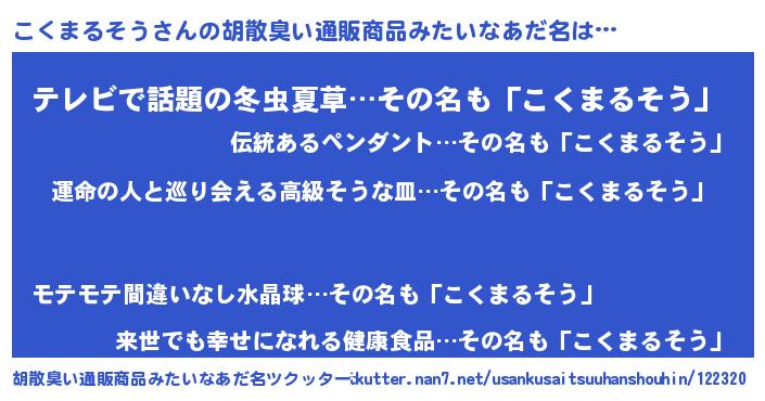 | 意味不明あだ名 | 『こくまるそうフォーエバー』 |