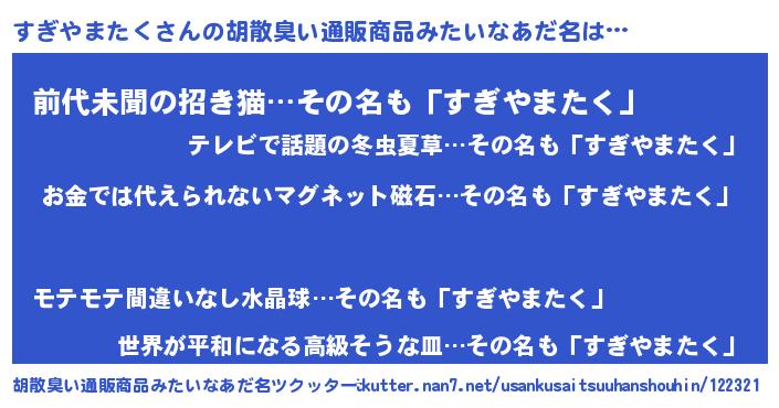 | 女子向けラノベタイトル風あだ名 | 『すぎやまたく恋絵巻』 |