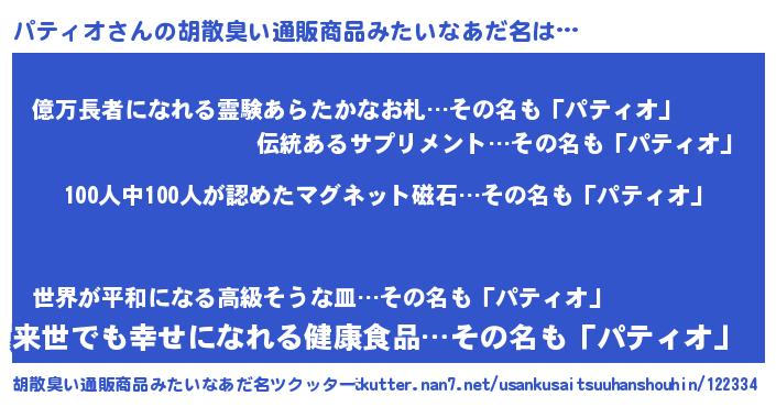 | ヘコむあだ名 | 『パテにー』『パティオ(遠い目)』 |