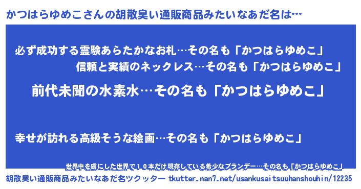 | ヘコむあだ名 | 『かつはらゆめこ(遠い目)』『かつもー』 |