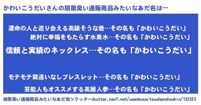 | 意味不明あだ名 | 『とにかく怪しいかわいこうだい』 |
