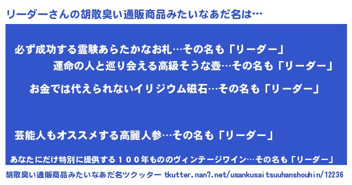 | ヘコむあだ名 | 『リーふぇ~』『つくし』『リーっぺ』 |