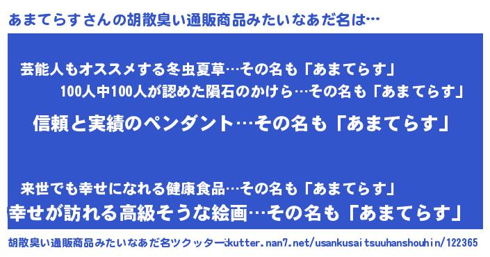 | 意味不明あだ名 | 『とにかく怪しいあまてらす』 |
