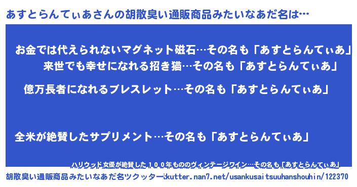 | ヘコむあだ名 | 『あすにー』『あすとらんてぃあ(爆)』 |
