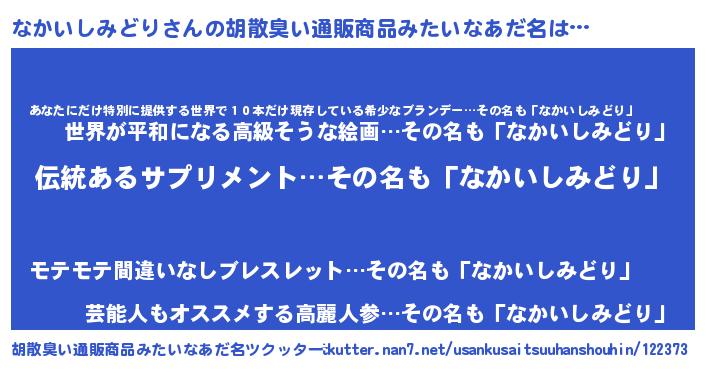 | 欧米人風あだ名 | 『ウサインなかいしみどり』 |