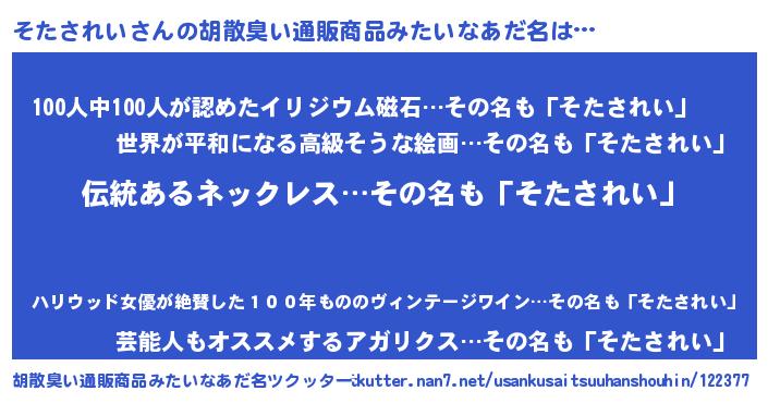 | 意味不明あだ名 | 『とにかく怪しいそたされい』 |