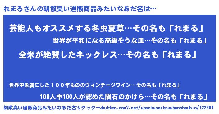 | 女子向けラノベタイトル風あだ名 | 『れまる様がみてる』『れまるの婚約者』 |