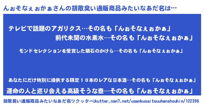 んぉそなぇぉかぁさんの胡散臭い通販商品みたいなあだ名をツクッター!