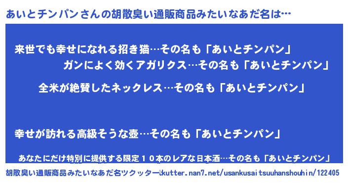 | 欧米人風あだ名 | 『ウサインあいとチンパン』 |