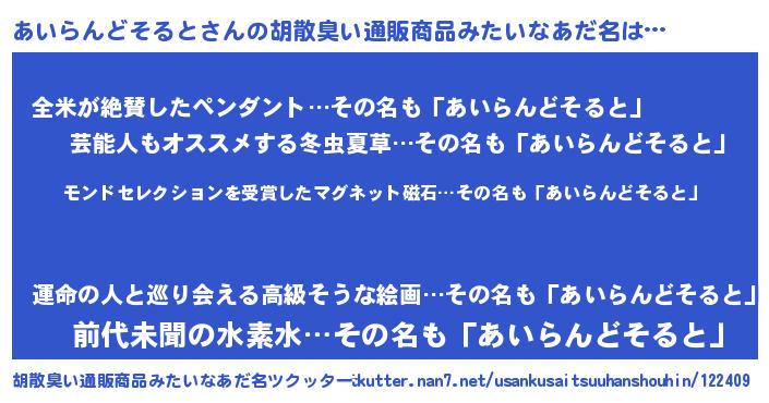 | ヘコむあだ名 | 『あいを』『あいらんどそると(苦笑)』 |
