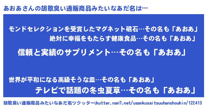 | 意味不明あだ名 | 『めかぶ科あおあ属』『自称あおあ』 |