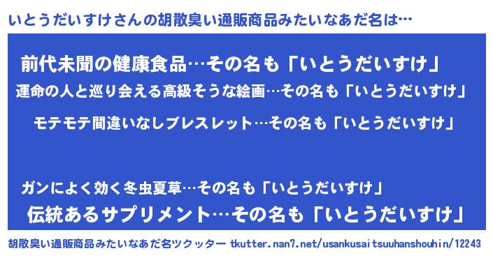 | 女子向けラノベタイトル風あだ名 | 『いとうだいすけ姫と円卓の騎士』 |