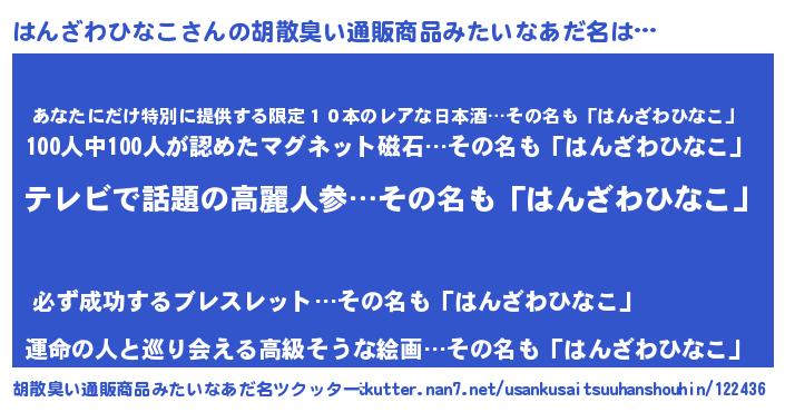 | 意味不明あだ名 | 『自称はんざわひなこ』 |