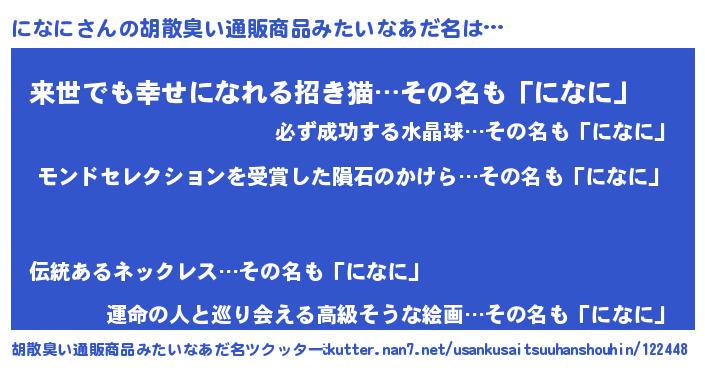 | 欧米人風あだ名 | 『アンジェラ・になに』『ダニエルになに』 |