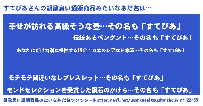 | 意味不明あだ名 | 『住所不定無職すてびあ(68歳)』 |