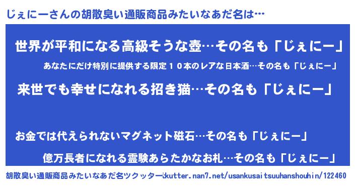| 男性向けラノベタイトル風あだ名 | 『転生したらじぇにーだった件』 |