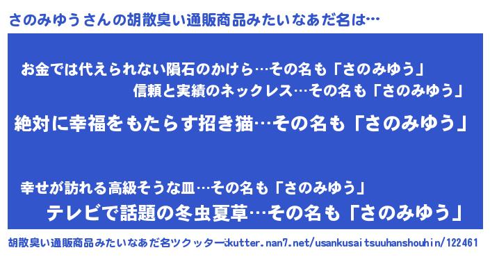 | 意味不明あだ名 | 『永久保存さのみゆう』『自称さのみゆう』 |