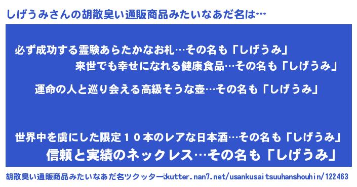 | 意味不明あだ名 | 『しげうみフォーエバー』 |