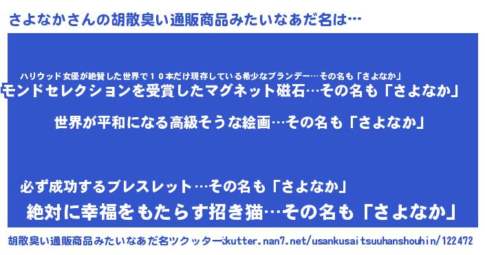 | ヘコむあだ名 | 『豆乳』『さよなか(苦笑)』『さよを』 |