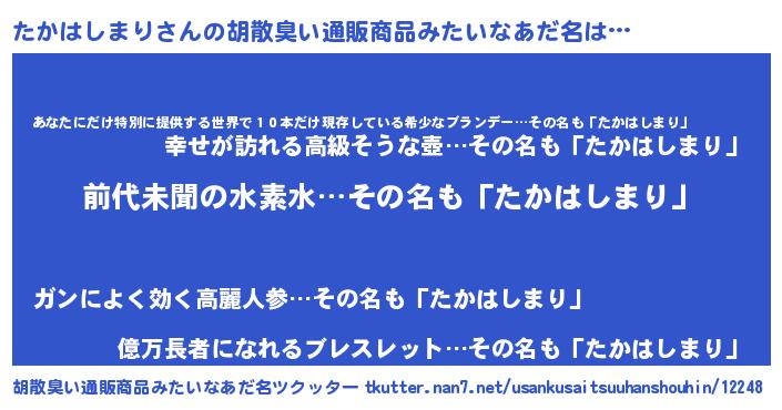 | ヘコむあだ名 | 『たかはしまり(震え声)』『たかにー』 |