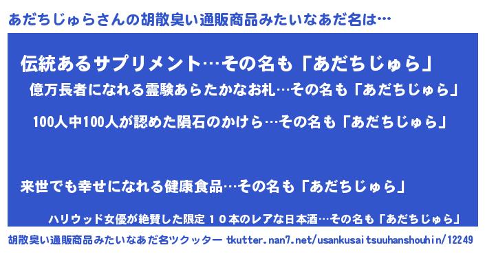 | 肩書あだ名 | 『あだちじゅら中将』『あだちじゅら教授』 |