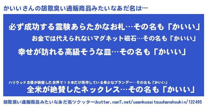 | 男性向けラノベタイトル風あだ名 | 『緋弾のカイイ』『カイイスレイヤー』 |