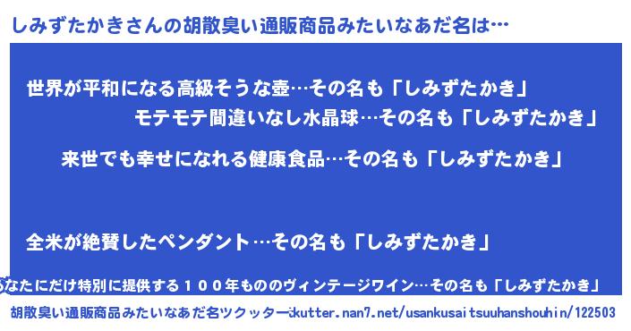 | ヘコむあだ名 | 『しみずたかき(笑)』『なまこ酢』 |