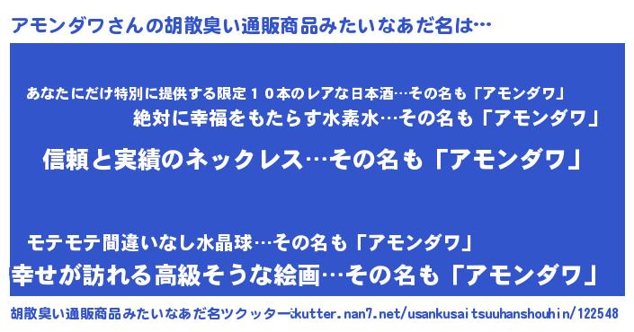 | 意味不明あだ名 | 『とにかく怪しいアモンダワ』 |