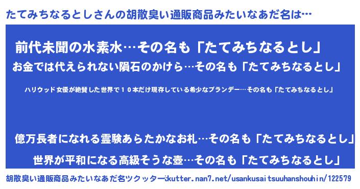 | 伝説のあだ名 | 『聞きしに勝る勇者たてみちなるとし』 |