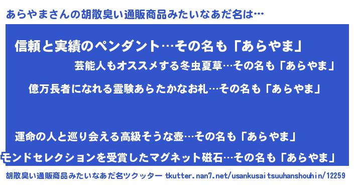 | 意味不明あだ名 | 『ペロリンあらやま』『自称あらやま』 |
