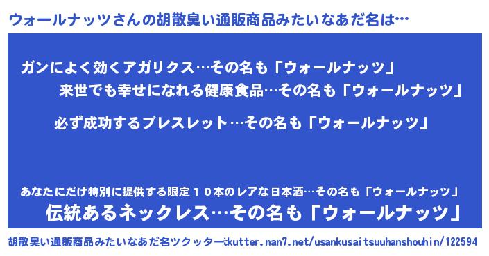 | 男性向けラノベタイトル風あだ名 | 『ウォールナッツの憂鬱』 |