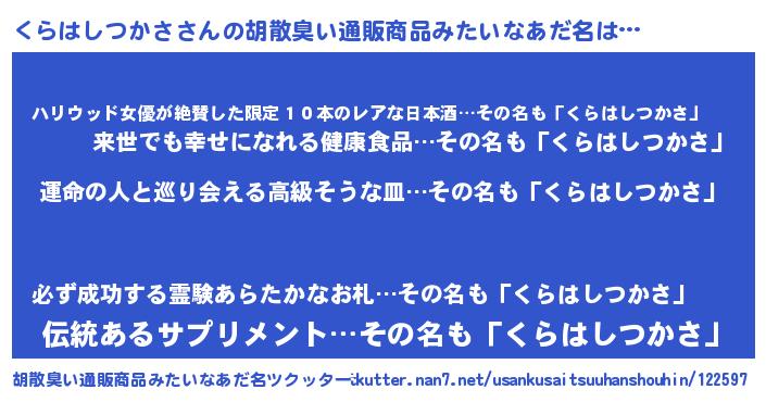 | 意味不明あだ名 | 『くらはしつかさフォーエバー』 |