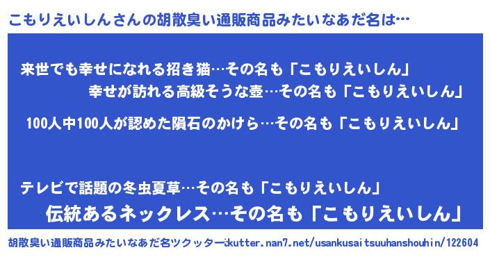 | ヘコむあだ名 | 『こもりえいしん(苦笑)』『こもお』 |