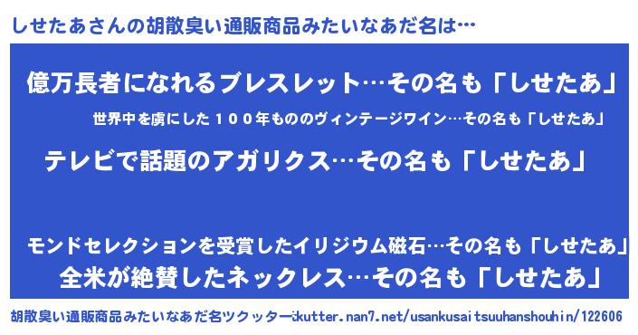 | 肩書あだ名 | 『しせたあ総統』『しせたあCEO』 |