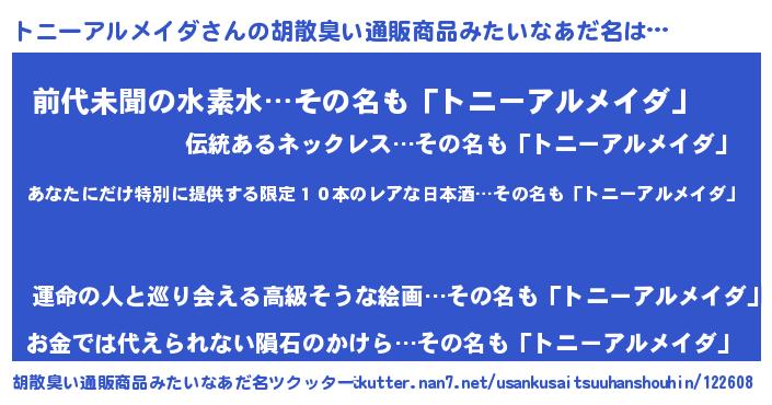 | ヘコむあだ名 | 『トニーアルメイダ(笑)』『トニっちょ』 |