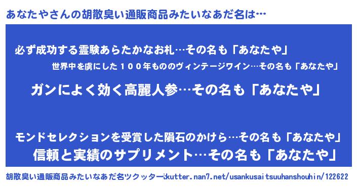 | 意味不明あだ名 | 『自称あなたや』『ペロリンあなたや』 |